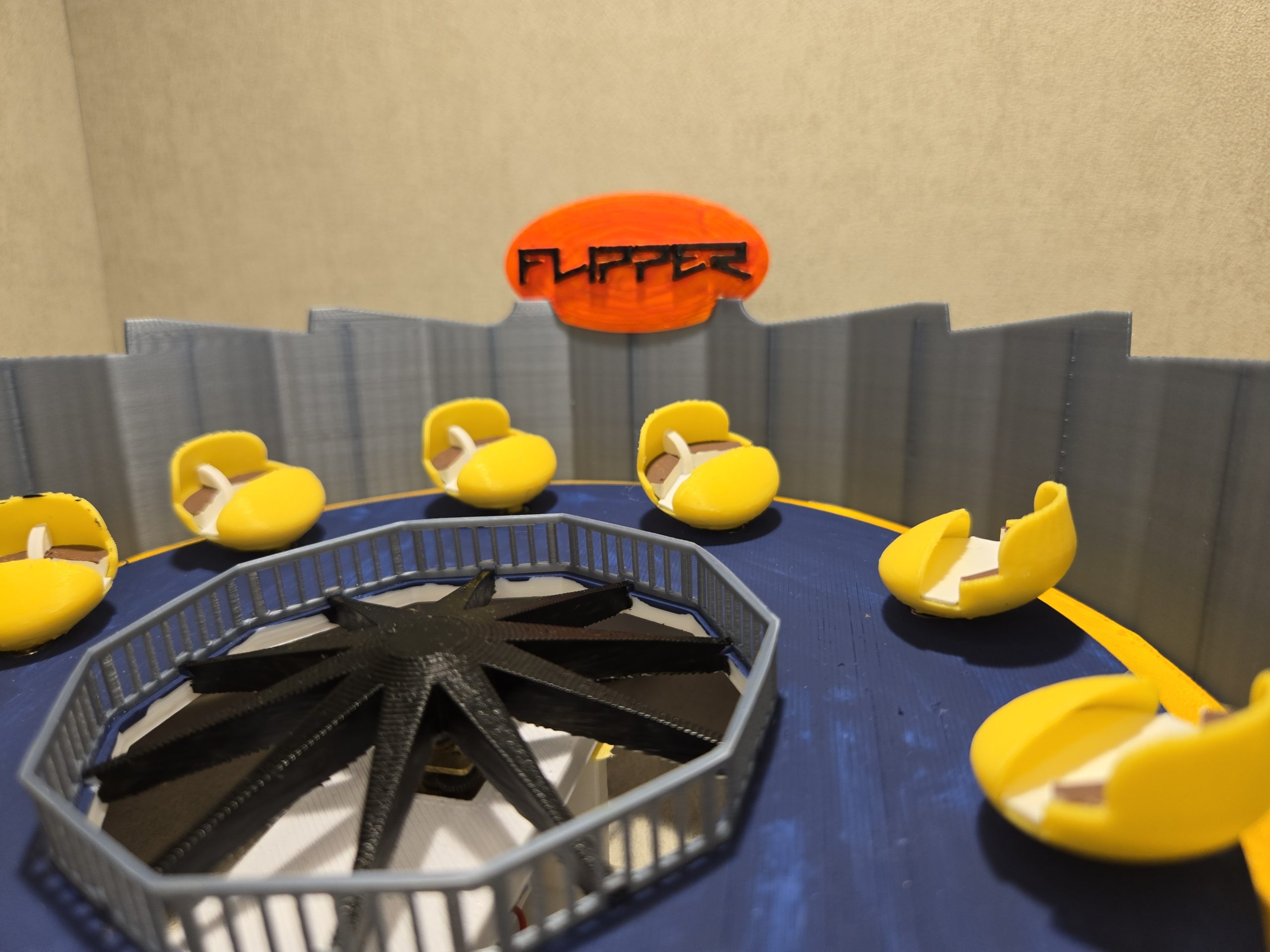 Hol dir mit dem Flipper eines der dynamischsten Fahrgeschäfte in deine Miniatur-Kirmes im Maßstab H0 (1:87)! Der Flipper sorgt mit seinen 10 Gondeln, die jeweils Platz für 4 Personen bieten, für rasante Drehbewegungen und endlosen Fahrspaß. Angetrieben von einem N20-Getriebemotor, einem Servo und einem Arduino-gesteuerten Motorcontroller, kannst du die Bewegungen individuell steuern und das echte Kirmes-Feeling in deine Modellwelt bringen.